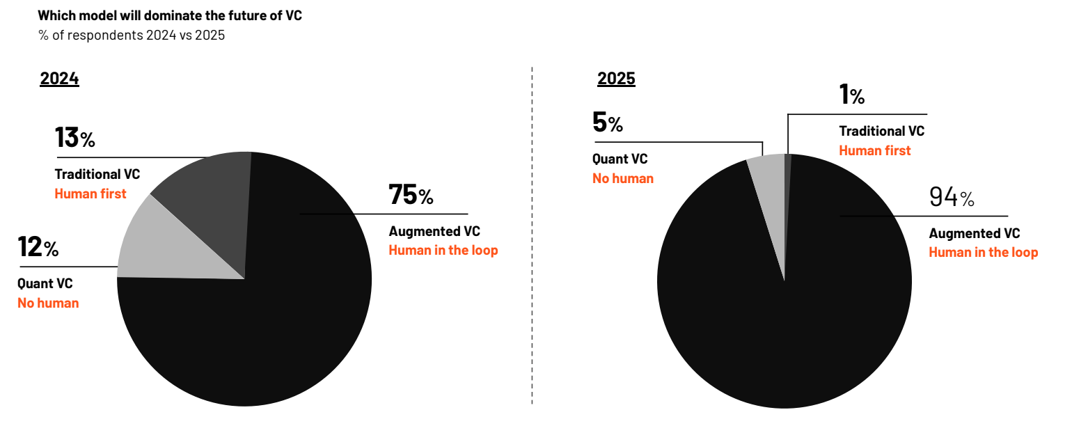 In 2024, VCs were bullish on both Quant VC and Traditional VC. In 2025, we saw that confidence drop, in both human-first and no-human approaches.